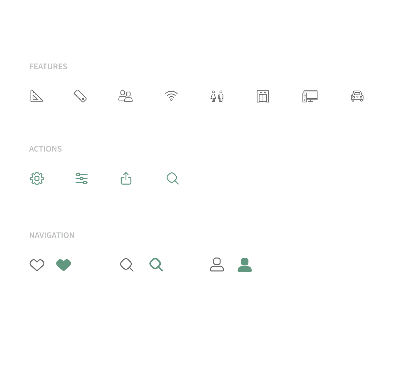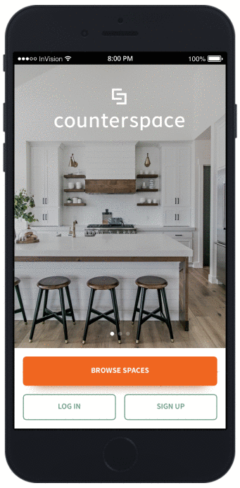 The visual language of the Counterspace app is simple and sophisticated. Rounded rectangular shapes echo from the logo to the custom icons to the buttons. The slightly pretentious brand colours are Sage (for a fresh and calming overall look) and Cayenne (for bright calls to action).