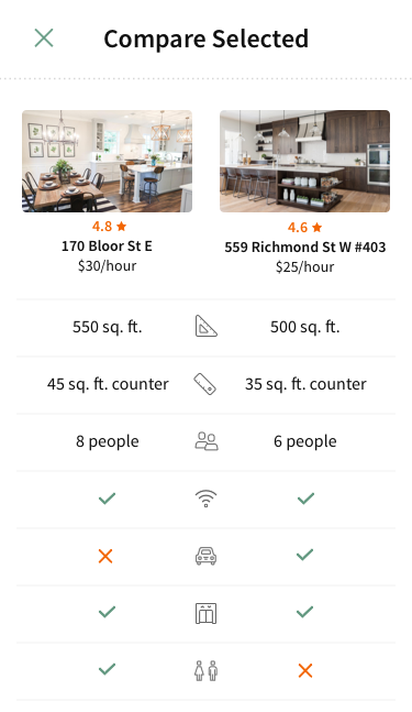 Airbnb provides living spaces, Breather provides meeting rooms, and Thisopenspace provides venues. There is currently no service that provides kitchen & dining spaces. Counterspace fills a gap in the market.