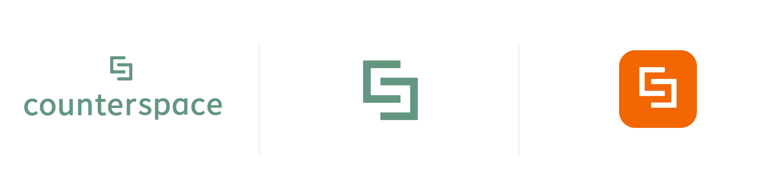 The Counterspace logo is two angular, interlocking "C"s that mimic the layout of a large kitchen counter. An "S" is formed in the literal "counter space" between the two letters. The logo can also be interpreted as two friends hugging or a visual representation of balance.