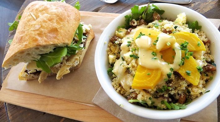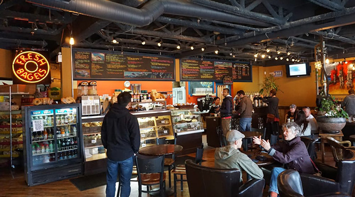 We love two different restaurants with very similar names! First is the Rocky Mountain Bagel Co. - we can’t count how many times we’ve eaten here. Fresh homemade bagels, the best local coffee, and a warm inviting atmosphere. Our favourites include the jalapeno cheddar bagel (Dave), pretty much any dessert (Alexa), the pizza bagel, and the Power Ball. Visit their website. Then there's the Rocky Mountain Flatbread Co., serving delicious flatbread pizzas featuring local, organic ingredients. Check out their website, too!